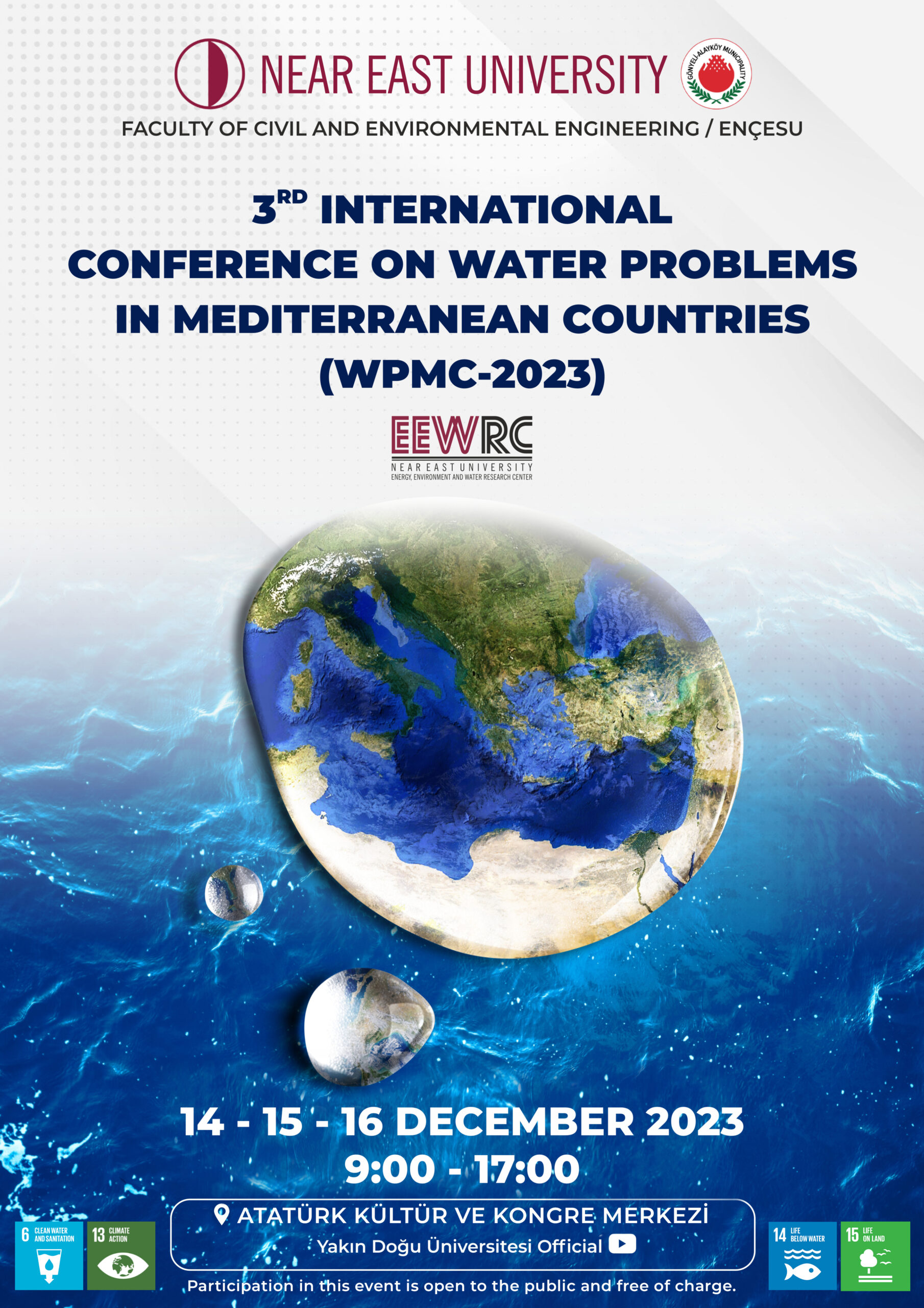 WPMC-2023 is the third meeting in the series of the International Conference of International Conferences on water Problems in Mediterranean countries (WPMC-97 and WPMC-2019) building upon successful outcomes at the Near East University in 1997 and 2019, respectively. WPMC-2023 is an internationally refereed scientific conference addressing water-related problems and environmental concerns in arid and semi-arid regions of the world particularly in Mediterranean region. Water problem in the Mediterranean countries will focus on water quality and quantity in the broadest sense. The conference brings together researchers in science, society, and environment to examine water problem from a multidisciplinary perspective. Water problem is crucial to expanding our understanding of water science, society, sea water and environment related issues that humankind encounters. Such understanding is the key towards identifying critical water-related challenges, developing novel solutions and implementing steps that contribute to achieving the sustainable development goals. We welcome contributions from both the natural and social sciences, as well as from stakeholders and decision makers and from private and public sectors. The conference gives a gold standard interdisciplinary platform and ideal environment to develop new collaborations and opportunity for research and academic forums, researchers, practitioners, and educators, industries, communities, and the private sector from worldwide to discuss most recent innovations and explore various dimensions of inter linkages between the impacts of climate change on water resources. WPMC-2023 aims to explore the use of new technologies in the study of arid and semi-arid environments and their natural resources as well as to provide an opportunity for decision makers, experts, and scientists to share their expertise in order to find integrative and comprehensive solutions for water resource problems. Moreover, WPMC-2023 aims to provide worldwide specialists, scholars, and researchers that are engaged in related fields a chance to exchange the latest research results and advances, study the latest technology, and establish an international friendship. This conference aims to provide intellectual guidance and scientific evidence on the challenges of global warming and climate change based on a humanistic and critical thinking approach, promoting research and education to build equality in the global community and more sustainable societies.
